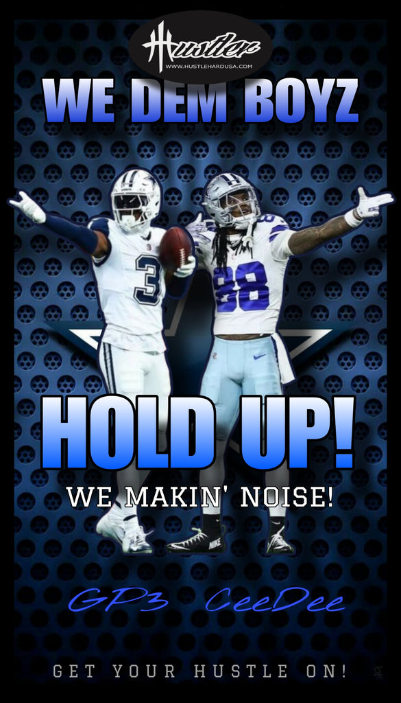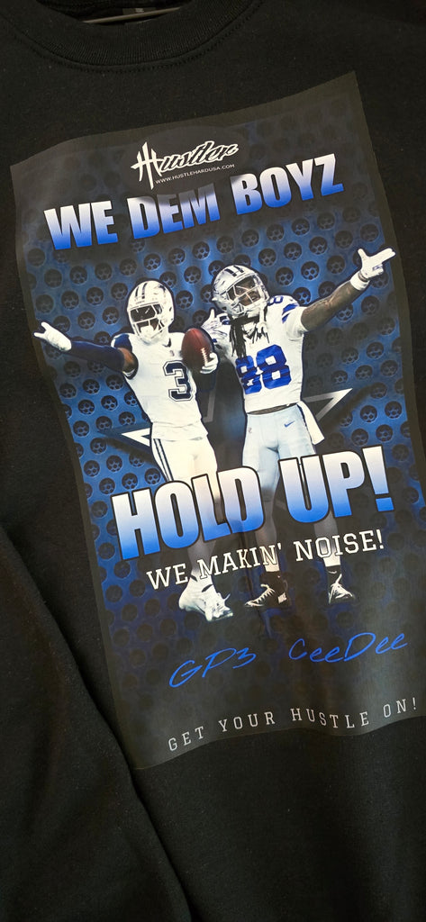 You'll get the oversized "WE DEM BOYZ" design of George Perkins and CeeDee Lamb on the FRONT and the HUSTLEHARDUSA Logotype and Logo on the BACK!